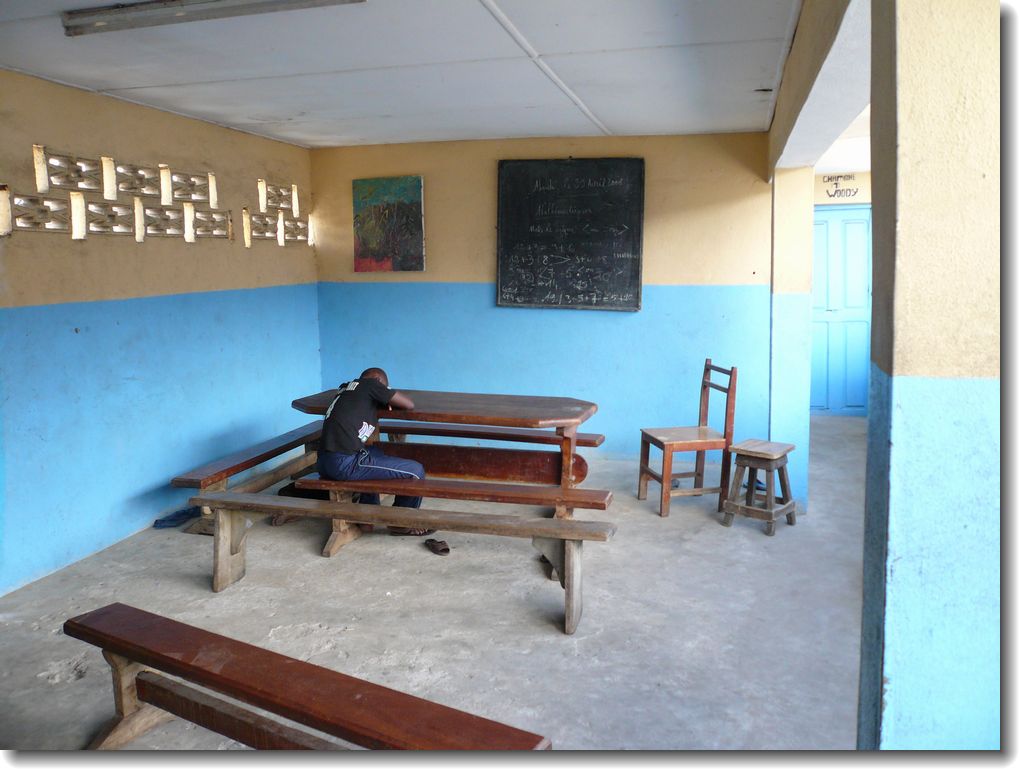 この施設の設備や人員は非常に充実していました。教育係2名、調理係1名、医者(看護婦?)1名が子供たちの生活の面倒を見、その他に職業訓練や設備調整を行う者、新たなプログラムを紛争関係、教育等の面で推進する者、さらにadministrationの人員などを加えると総勢15名以上でしょうか。写真は算数を教えていた場所です。