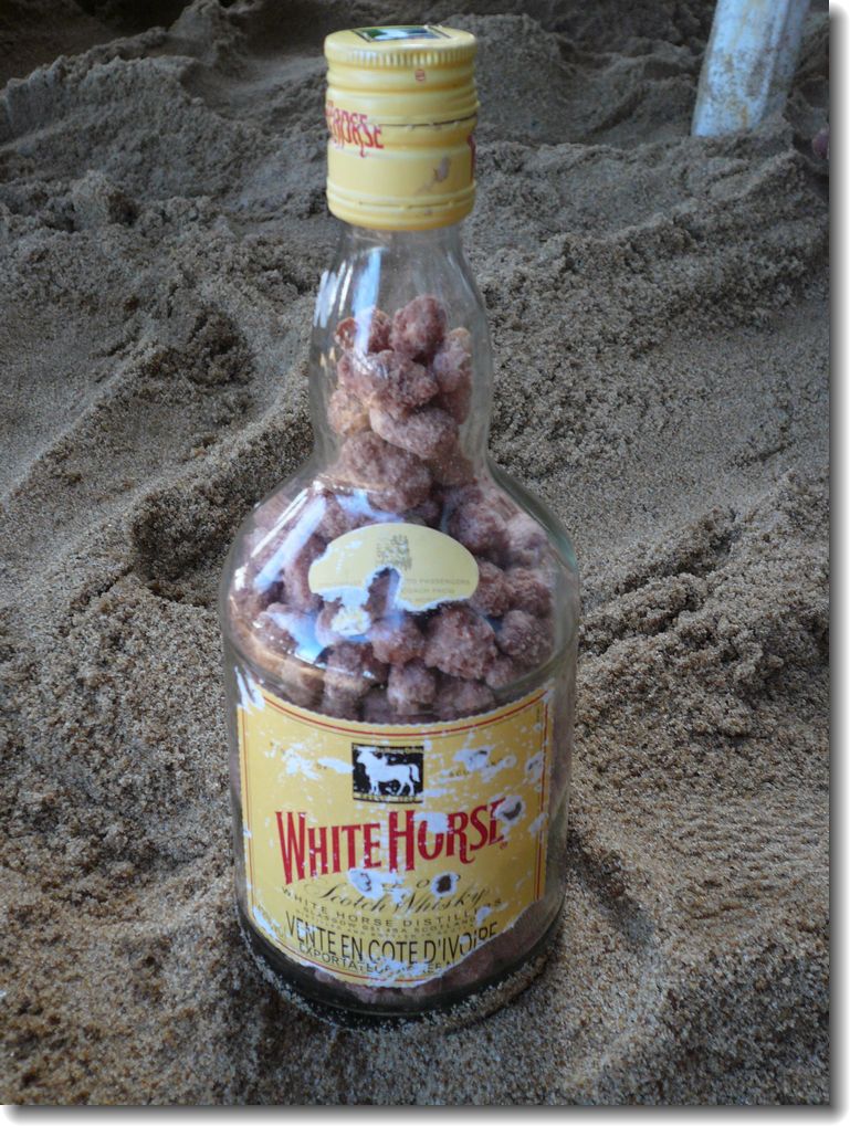 それからは波打ち際で遊ぶことにし、疲れたら寝転がって体を焼いたり、木陰でチェスをしたり、昼寝をしたり・・・休日という感じでしたね( ̄▽ ̄)Vただ、浜辺が広がり過ぎており、日本のような岩場というのが見当たらないので、水中の生き物をみたりできないのがすこし残念ですね。写真は浜で買った瓶入りピーナッツ500F(約130円)です。ココナッツでコーティングしてあり、かなり美味しかったです。