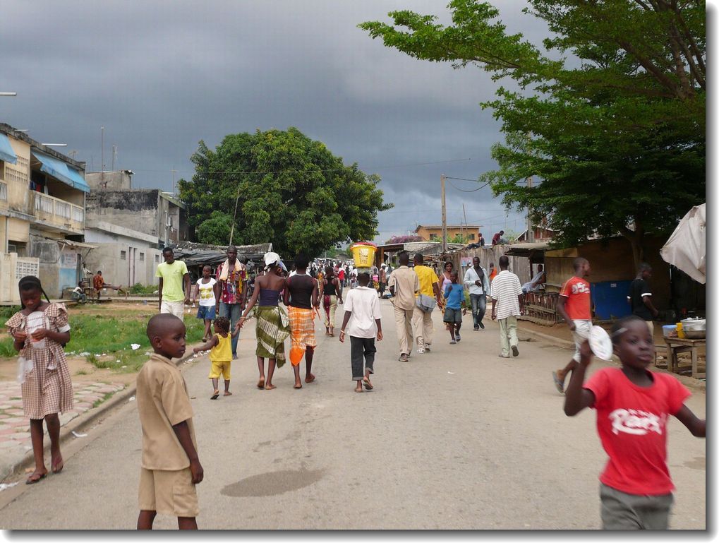 ここでは町の中にゴミが散乱しています。基本的にゴミの収集というものはないらしく、家庭で出たゴミをその辺に捨てるからです。どこを見渡してもゴミばかりで、町の臭いもよくありません。白い象牙海岸のイメージは露知らず、この汚さにも少し失望しました。本当は政府が対策を打つべきなのでしょうが、川の氾濫で通行できなくなった橋の補修もしないような政府なので、それも難しいのでしょう。