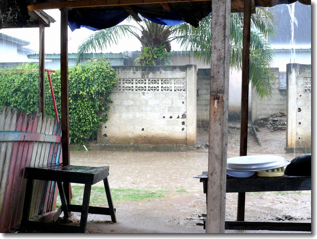 今日は家に帰ったところ誰もおらず、さらに雨まで降ってきたので近くのあばら家で雨宿りをしていました。すると、以前からちょくちょく話をしていた身体不自由の男性がやって来ました。彼は近くにいた女性にウィスキーを買ってきてくれと頼み、その女性は少し不満そうでしたが袋入りのウィスキーを買ってきました。彼が払った様子はありません。恐らく身体が不自由なので、女性も気を遣ったのかなと思って見ていました。